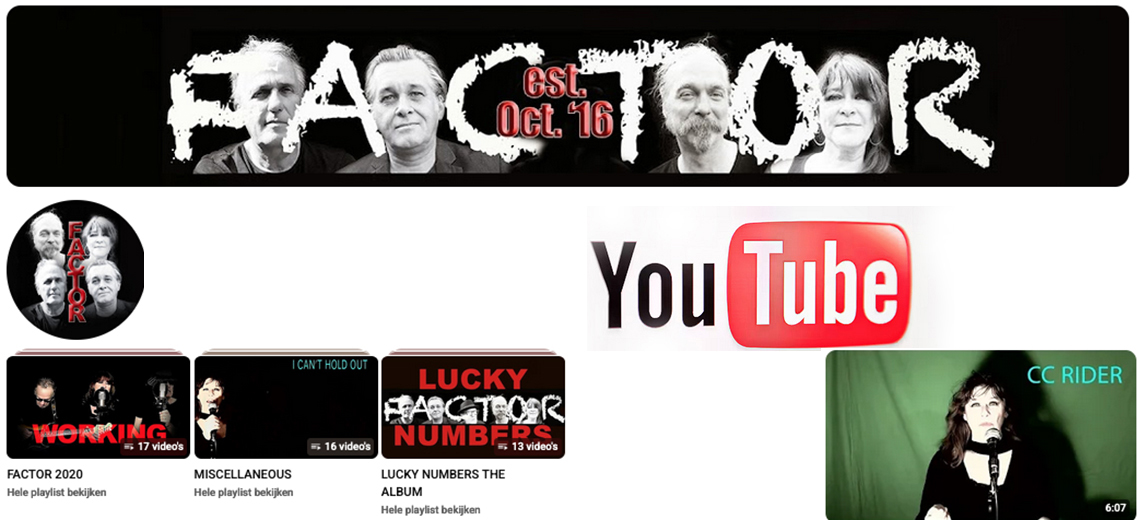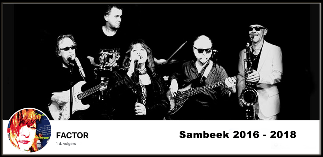 We are the Factor! LEAN BACK ENJOY THE RIDE We'play blues-jazz-funk-bebop-rock-bluesrock. our album: "Lucky Numbers" The release of our first album was Oct. 2016. BCD 16197 Blues Company. We write our own music and lyrics. Some songs are covers in our own way. Recorded@Sambeek Holland aka Sambrook City, in our own studio. FACTOR the band: Linda Jarvis - vocals-organ-synths Johnny Dirven - guitar-vocals Tony Peters - saxophone-flute Piet Tromp - bass guitar John Rietberg - drums-percussion-backings you can follow us@
