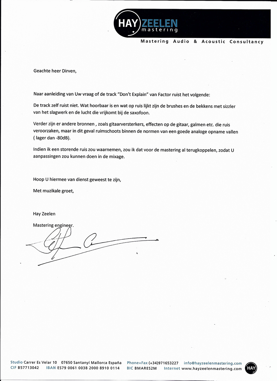beschadigt natuurlijk mijn naam als soundengineer en studio