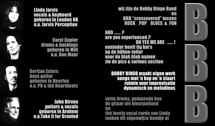 Bonkie Bongaerts (Bots Mr. Albertshow) piano & organ John Dirven bluesharp & guitars & vocals